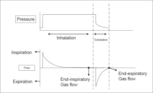 - De triggervariabele: Deze variabele bepaalt het opgang komen van de inspiratoire gasflow en deze kan dus bepaald worden door de patiënt d.m.v. druk- of flowtriggering waarop de overgang van expiratie naar inspiratie volgt. Als de patiënt niet triggert spreken we van machine triggering of tijdtriggering.